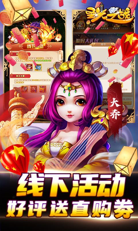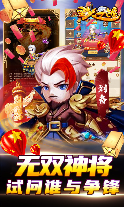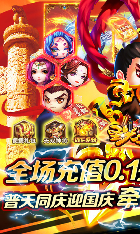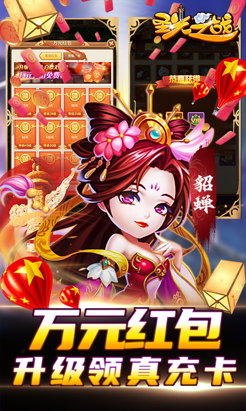 《圣光之战(0.1折版)》是一款以三国题材的挂机游戏,超炫萌系画风,结合卡牌体系,使玩家亲临其境,将各路三国英雄收入麾下,一统三国。游戏开局直接送一套GM装备,升级再领万元红包,还有每天完成任务皆能领取红包,福利爆满,游戏简单容易上手,轻松滑动指尖,放置挂机养成,给您不一样的游戏体验!