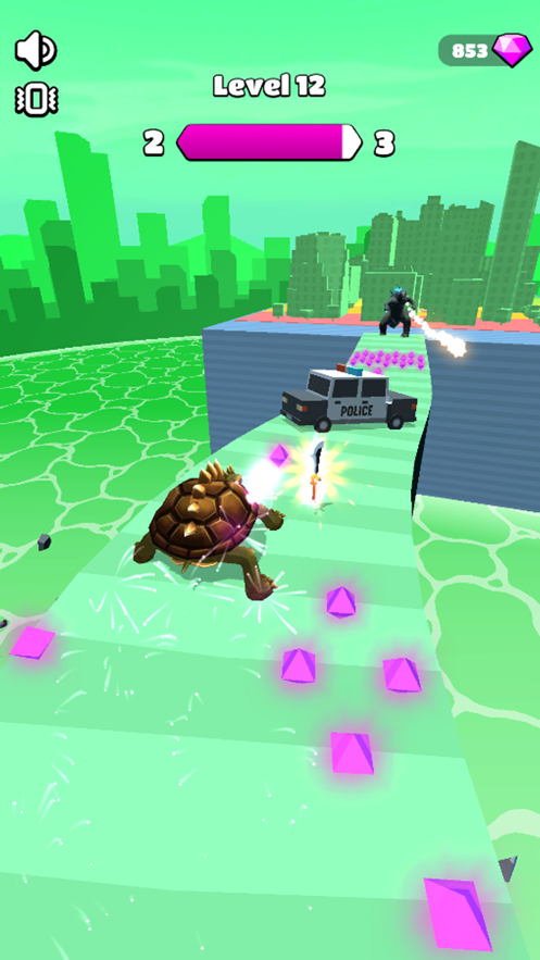 这是一款3D过关游戏,在游戏过程中,玩家需要不断的营救一路上遇到的同伴,并将他们聚拢到自己身边,当身边的同伴足够多的时候,你将会进化为更强的个体,然后击败最终的超级boss获得胜利,加油,努力向前吧!