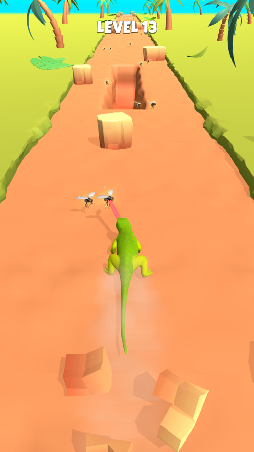 这是一款主打怪兽闯关跑酷游戏,当然主要还是生存闯关为主,我们在这款游戏中将会以一个怪兽的身份参加跑酷,向着终点前进。当然作为一头强大的怪兽,赛道上的一般性障碍是难不倒我们的,但我们要小心赛道上那条不断喷火的哥斯拉,他将会是我们的大敌。