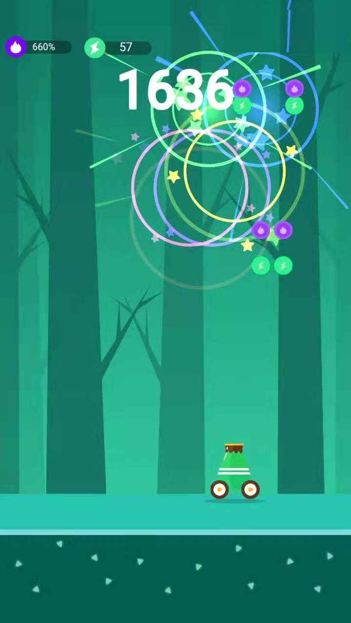 2、移动炮台可以躲避不断出现的各种圆形球球,还能拾取能力让射击威力变强;