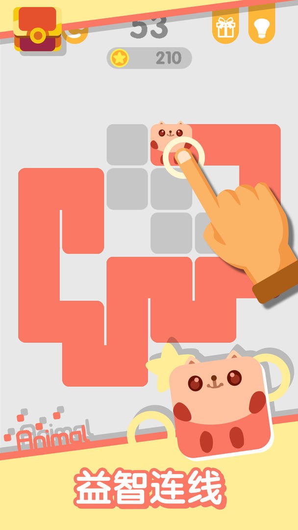 2、简约色彩的美术风格,轻松舒适的音乐,滑动来填满所有的方格;