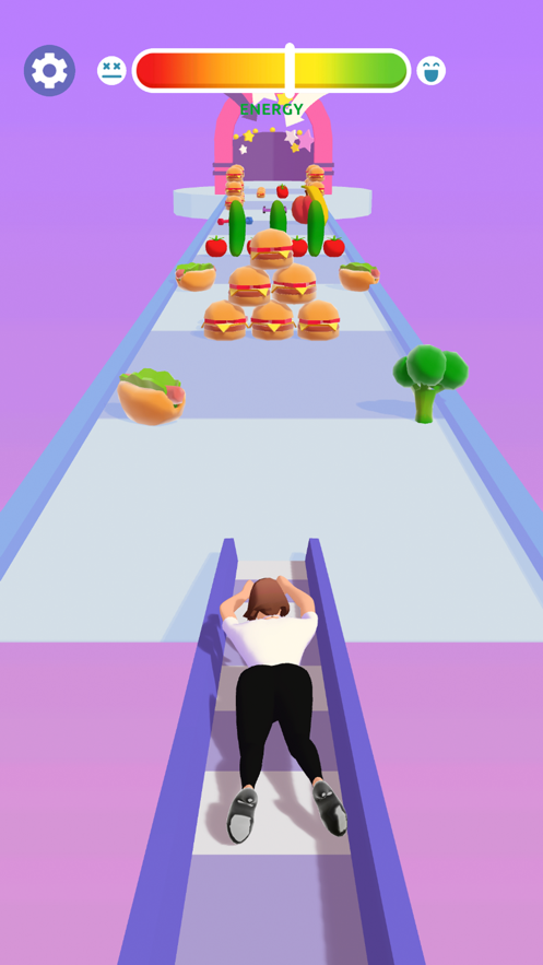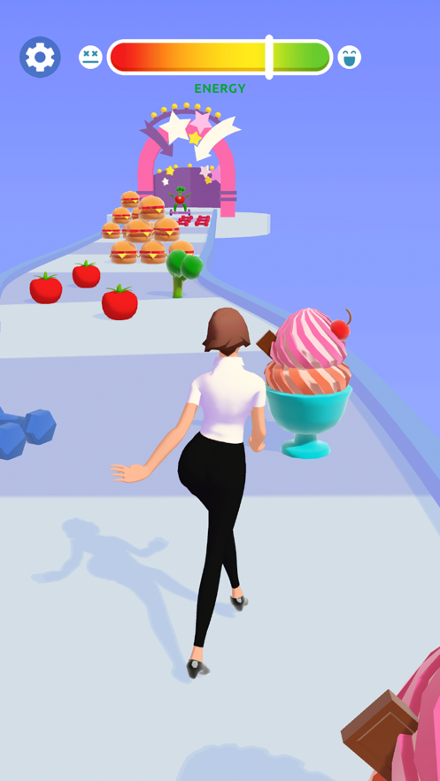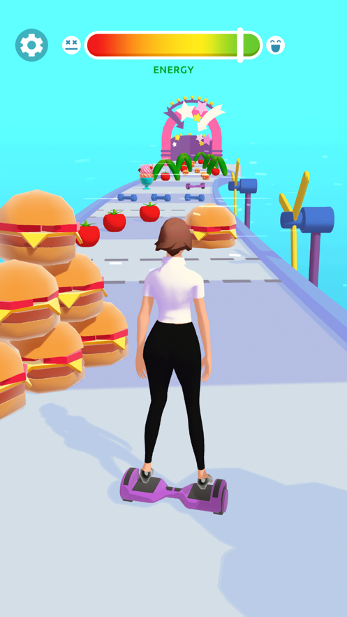 2、小心千万别吃到汉堡,超高热量的,巧妙利用赛道中的道具去帮助角色把身材瘦下来。